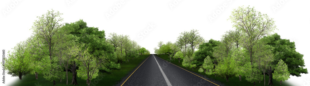 Obraz na plátně car on the road/The highway cuts through a lush green forest, where trees line b
