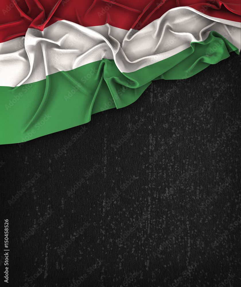 Obraz na plátně Hungary Flag Vintage on a Grunge Black Chalkboard With Space For Text