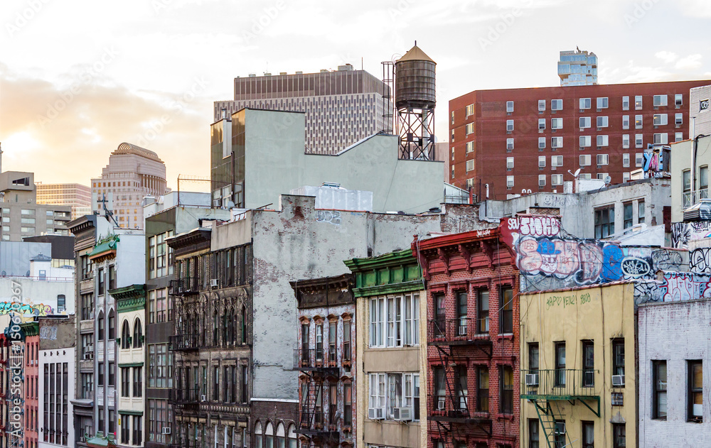Obraz na plátně Colorful old buildings and rooftops of Chinatown in Manhattan, New York City NYC