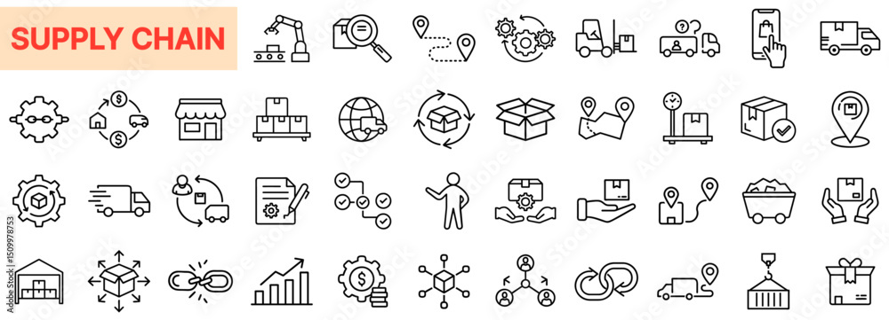 Obraz na plátně Supply Chain and Logistics Line Icon Design Featuring Shipping Routes, Warehouse