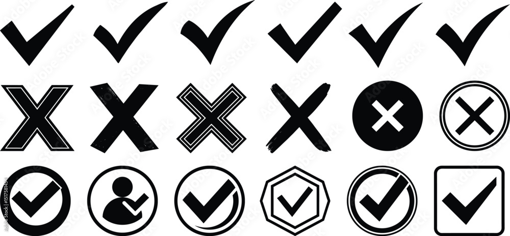 Obraz na plátně Check mark black vector check cross icons set for apps web ui and infographics