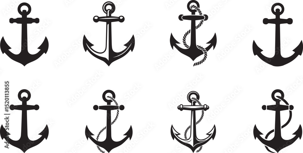 Obraz na plátně Nautical anchors collection black silhouettes set. eps-10