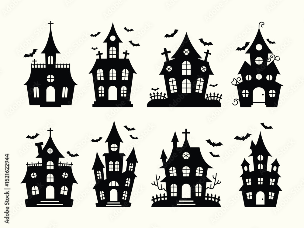 Obraz na plátně A collection of scary haunted mansions and flying bats for all your fright night design projects