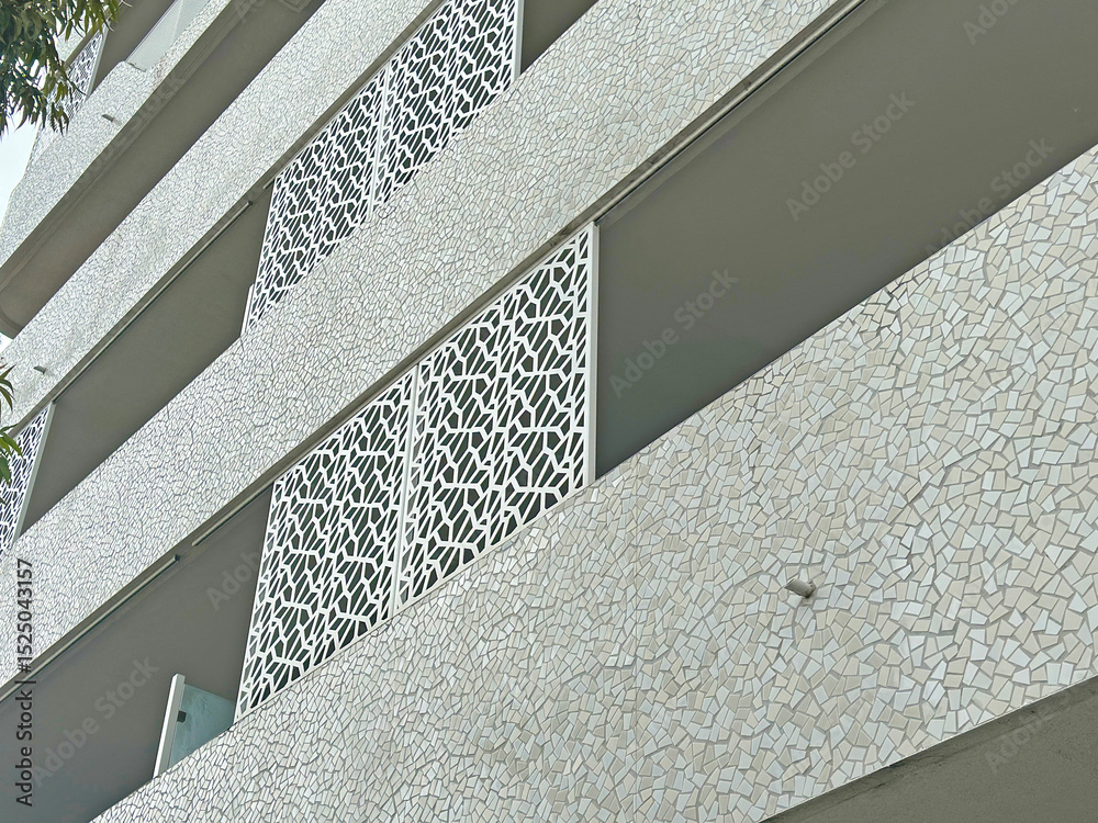 Obraz na plátně Abstract image of white tiled balconies and privacy screens on an apartment buil