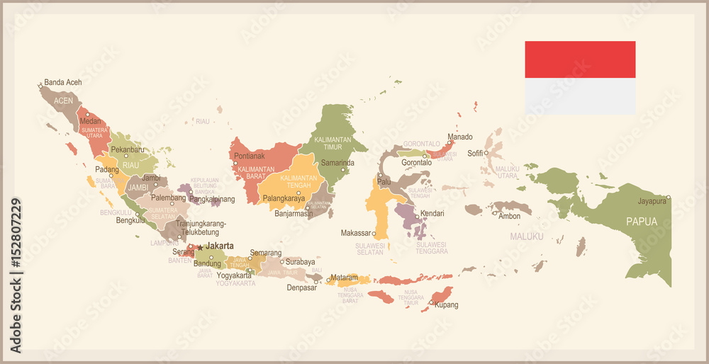 Obraz na plátně Indonesia - vintage map and flag - illustration