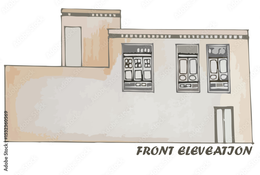Obraz na plátně Front Elevation of Afghanitan vernacular house.eps