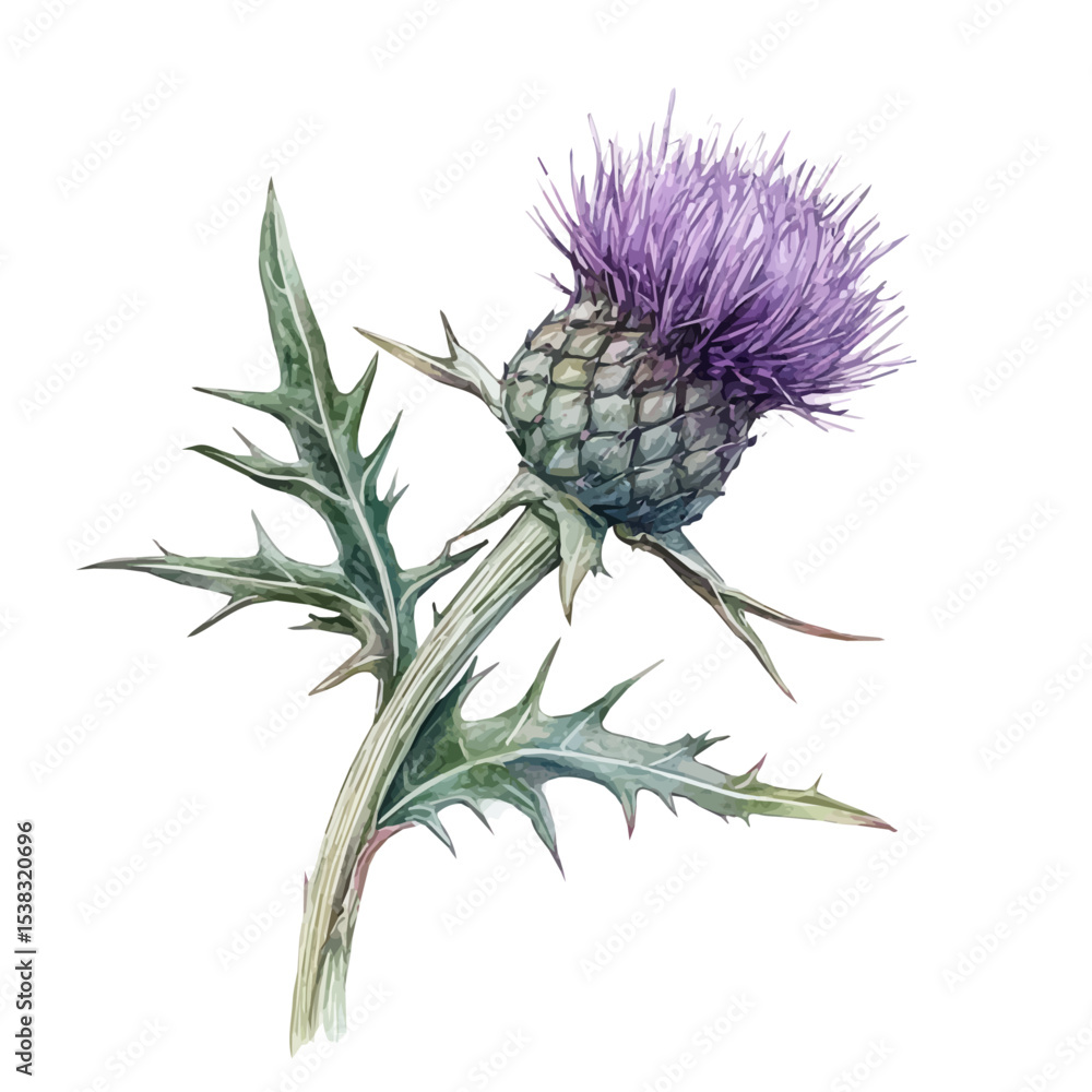 Obraz na plátně A Thistle Stem, watercolor illustration vector, isolated on a white background