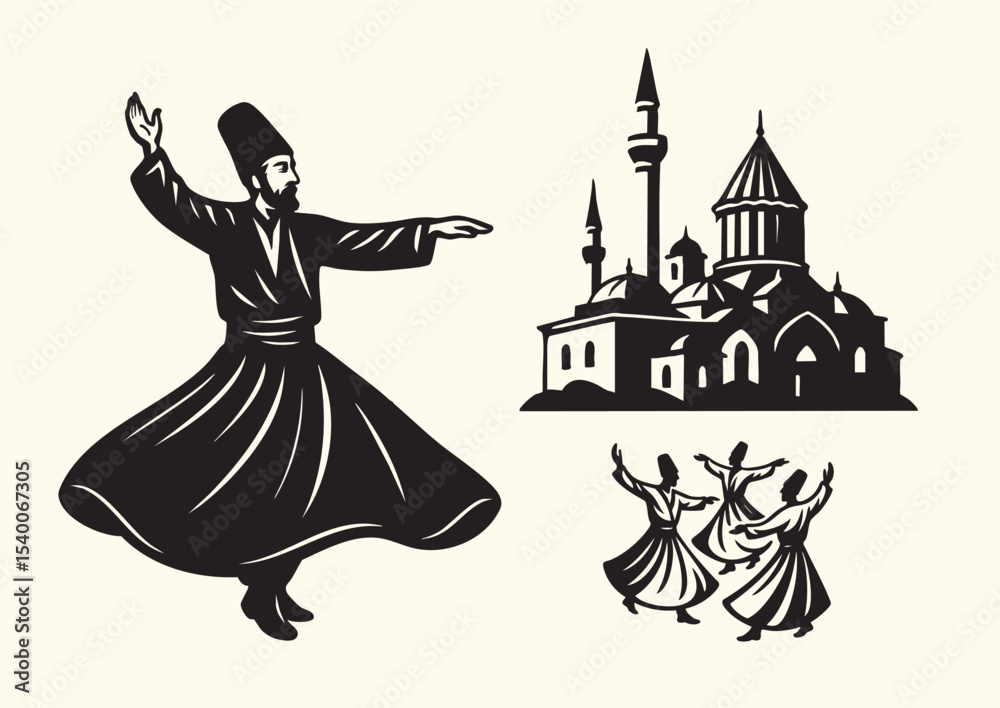 Obraz na plátně Whirling sufi dervishes silhouette vector illustration