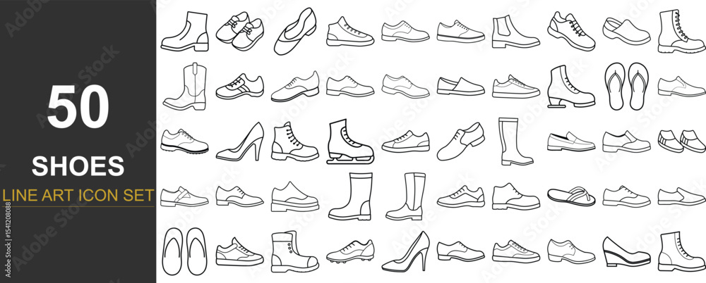 Obraz na plátně 50 Stylish Footwear Line Art Vector Icons Featuring a Variety of Shoe Types from