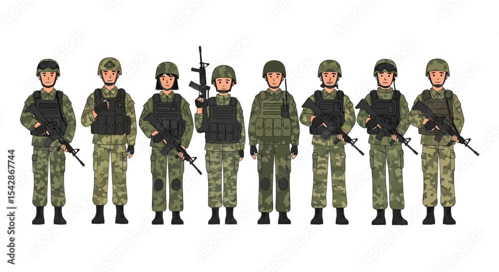 Obraz na plátně Military Personnel in Camouflage Uniforms with Rifles