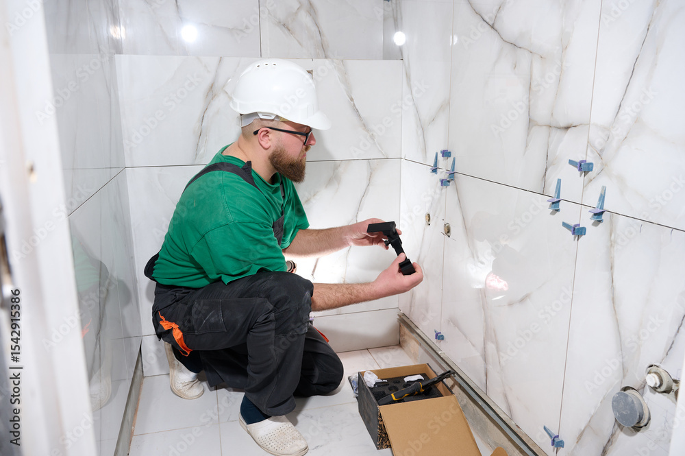 Obraz na plátně Plumber installing a handheld bidet sprayer