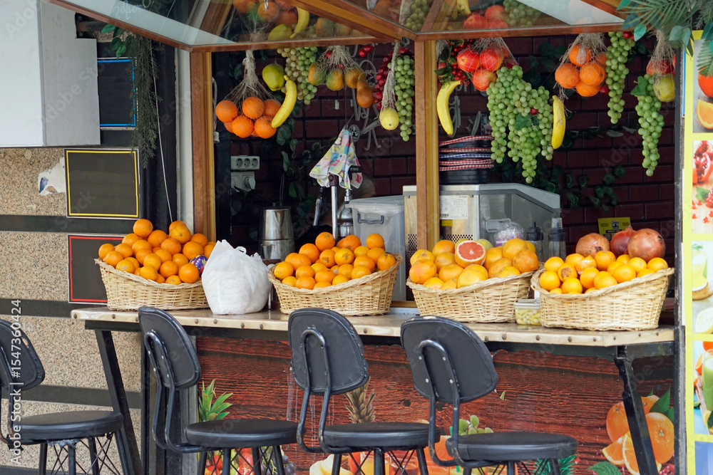 Obraz na plátně Fresh fruits fill vibrant street stand
