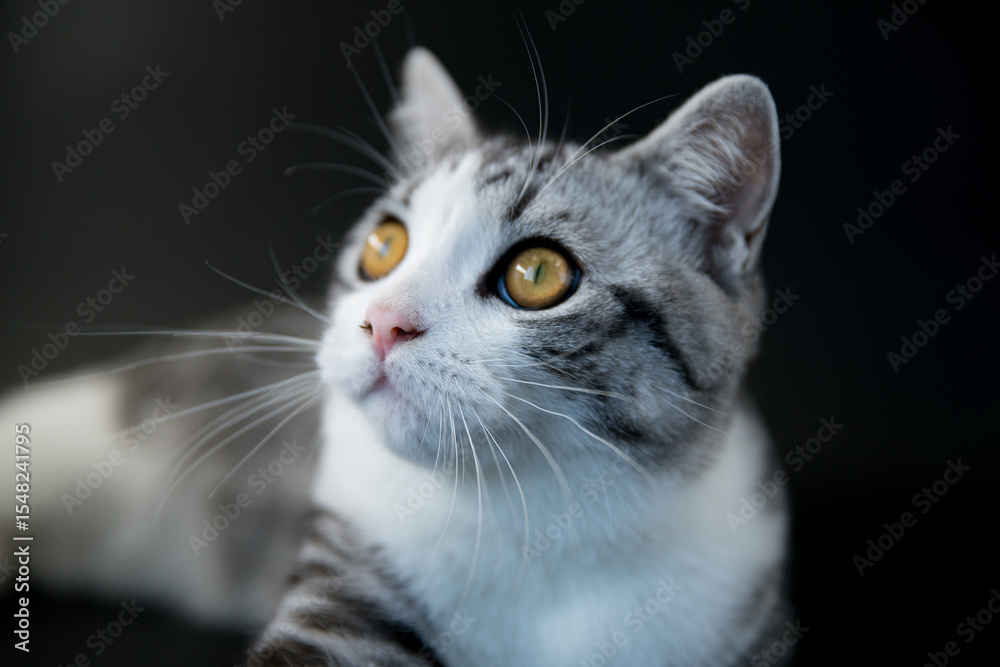 Obraz na plátně Gray and White Cat Gazing into the Distance