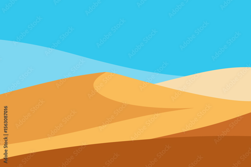 Obraz na plátně Stylized desert landscape with rolling sand dunes under a clear blue sky