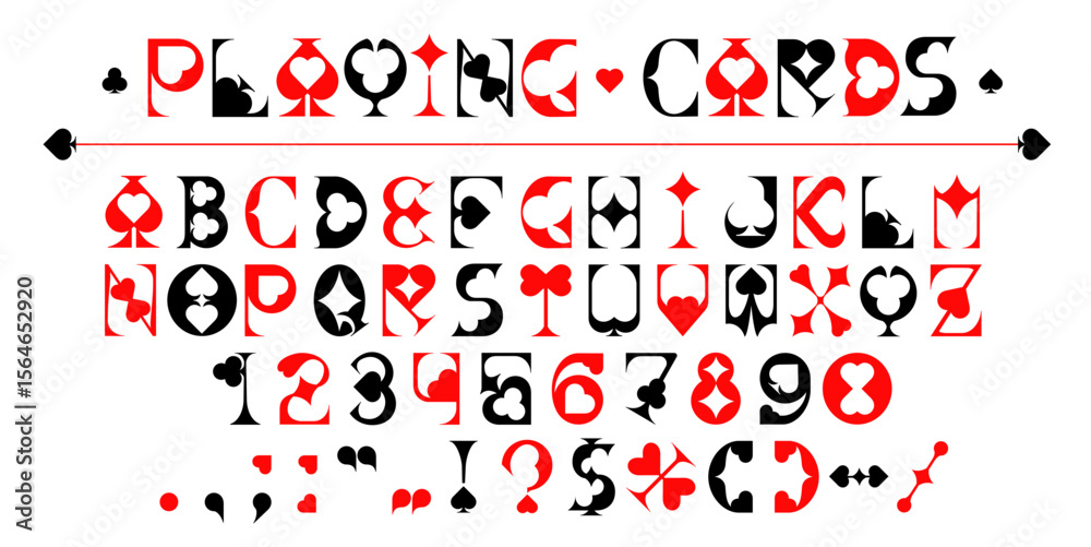 Obraz na plátně Casino game card suit font, poker typeface, gambling type, ace English alphabet,
