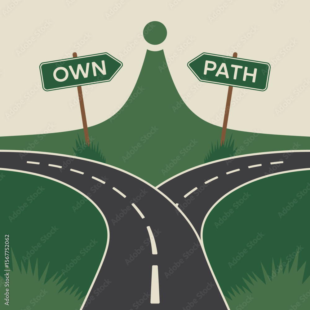 Obraz na plátně A road forks into two directions with signs pointing to own and path representin