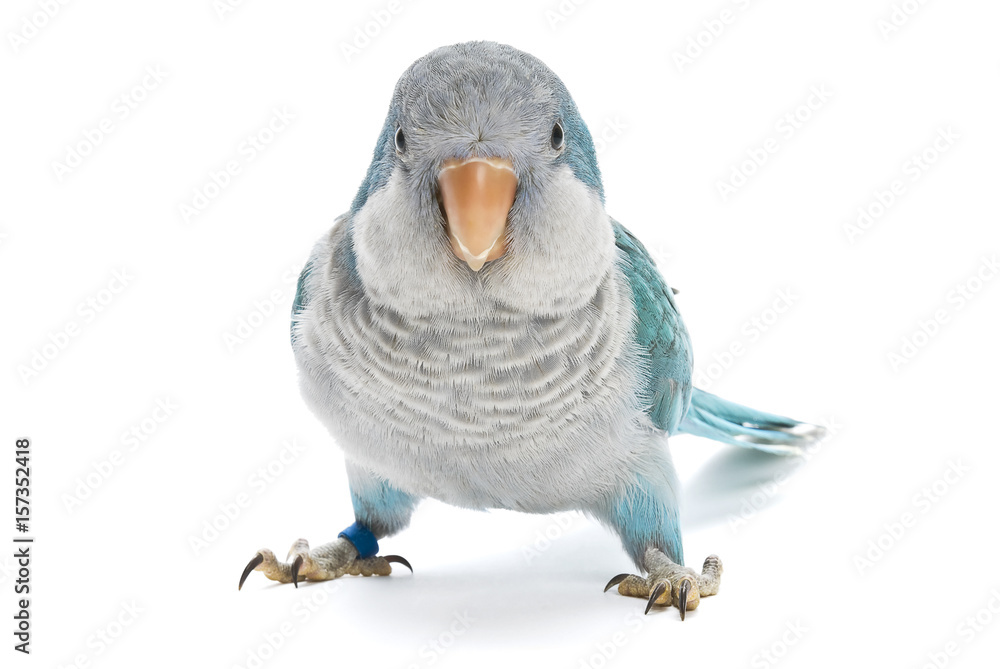 Obraz na plátně Young blue quaker, Myiopsitta monachus, 10 weeks old on a white background