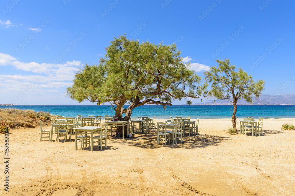 Obraz na plátně Romantic greek tavern on the Plaka beach. Naxos island, Greece.