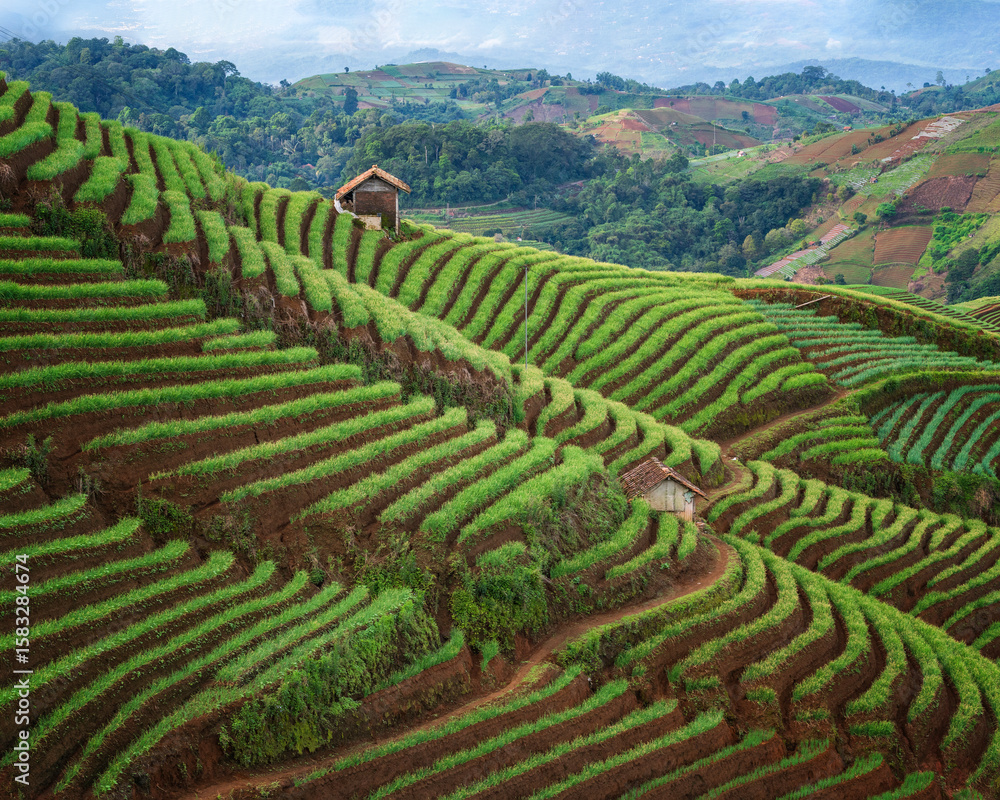 Obraz na plátně Panyaweuyan's terraced shallot fields in Majalengka, West Java, are a stunning natural wonder