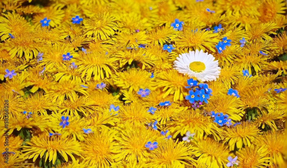 Obraz na plátně Background made of many of sow-thistle, dandelions