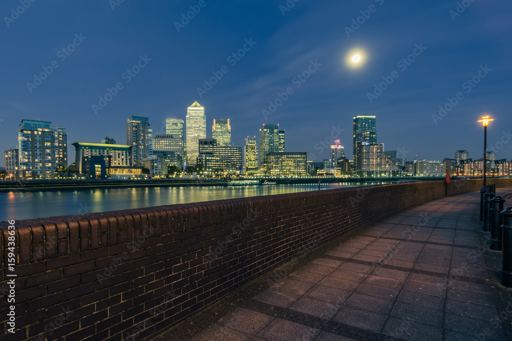 Obraz na plátně Canary Warf financial skyscrapers illuminated, London
