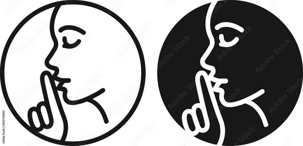 Obraz na plátně Two circular icons showing a woman s profile with a finger to her lips indicatin