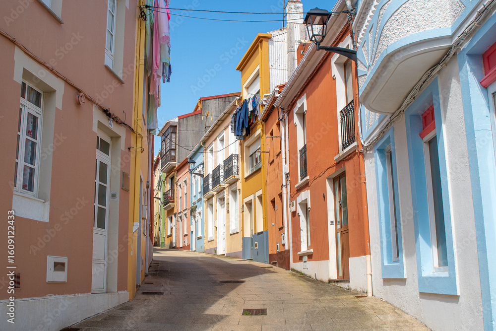 Obraz na plátně Colorful architecture in the main street of Cariño, a small town of Galicia, Spain