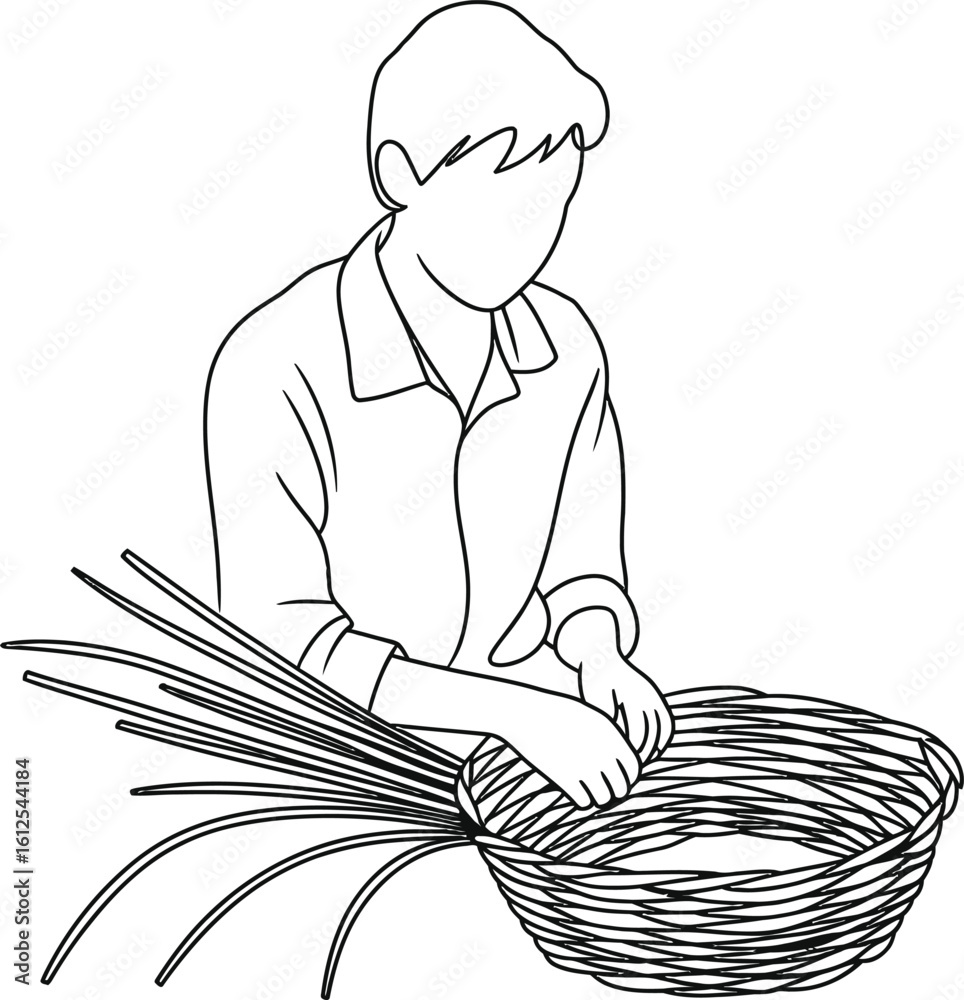 Obraz na plátně Person weaving a basket with natural materials in a line drawing style