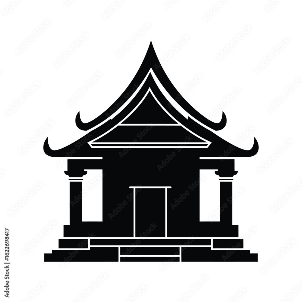 Obraz na plátně Traditional Asian temple silhouette, pagoda and historical building