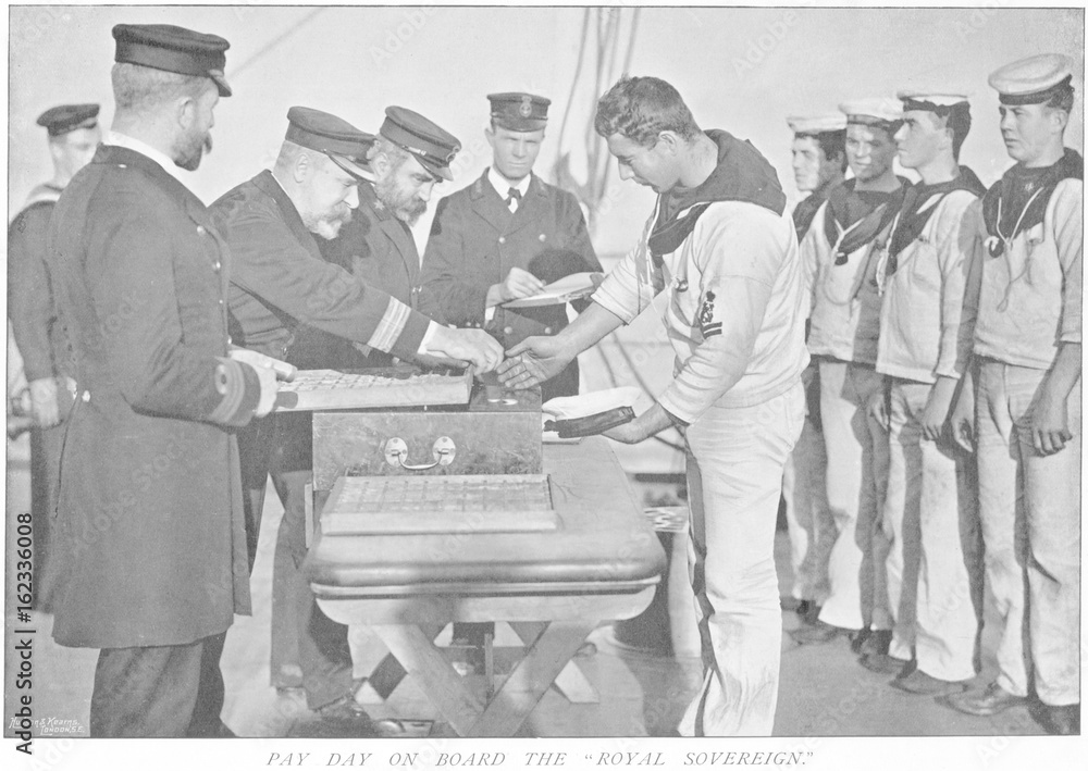 Obraz na plátně Pay Day on Naval Ship. Date: circa 1895