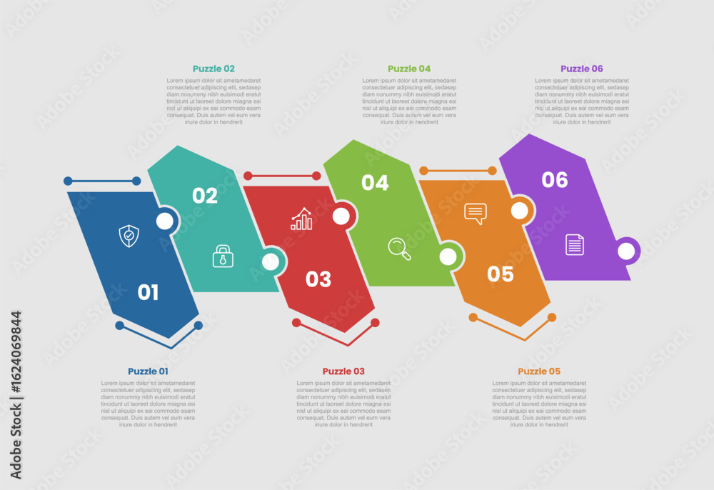 Obraz na plátně puzzle jigsaw shape base infographic diagram with skew rectangle box with triang