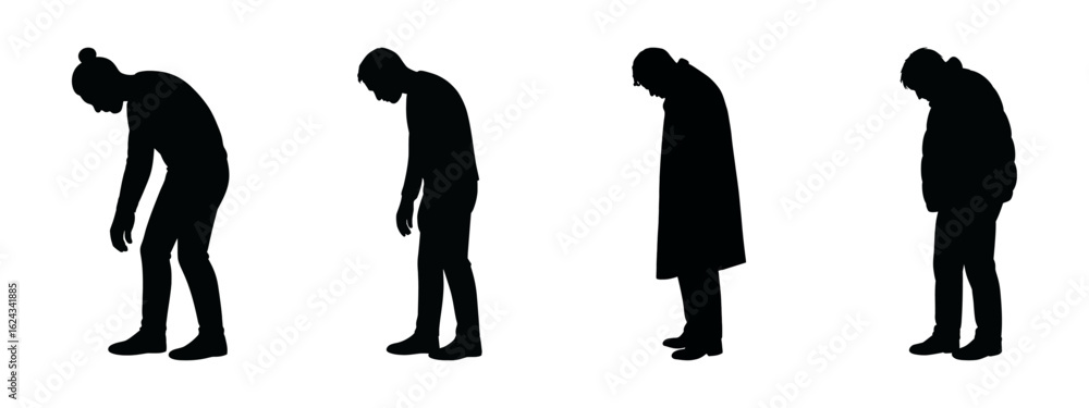 Obraz na plátně Silhouette of Isolation: A poignant series of silhouettes portraying individuals in various stages of downward posture, each figure enveloped in a profound sense of solitude and contemplation