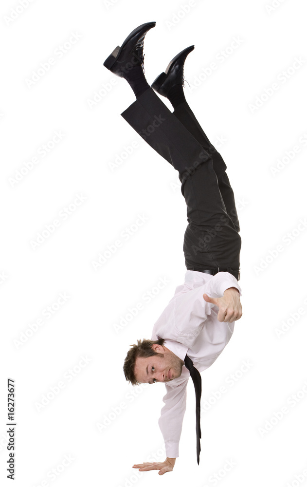 Obraz na plátně Businessman doing handstand and giving a thumbs up