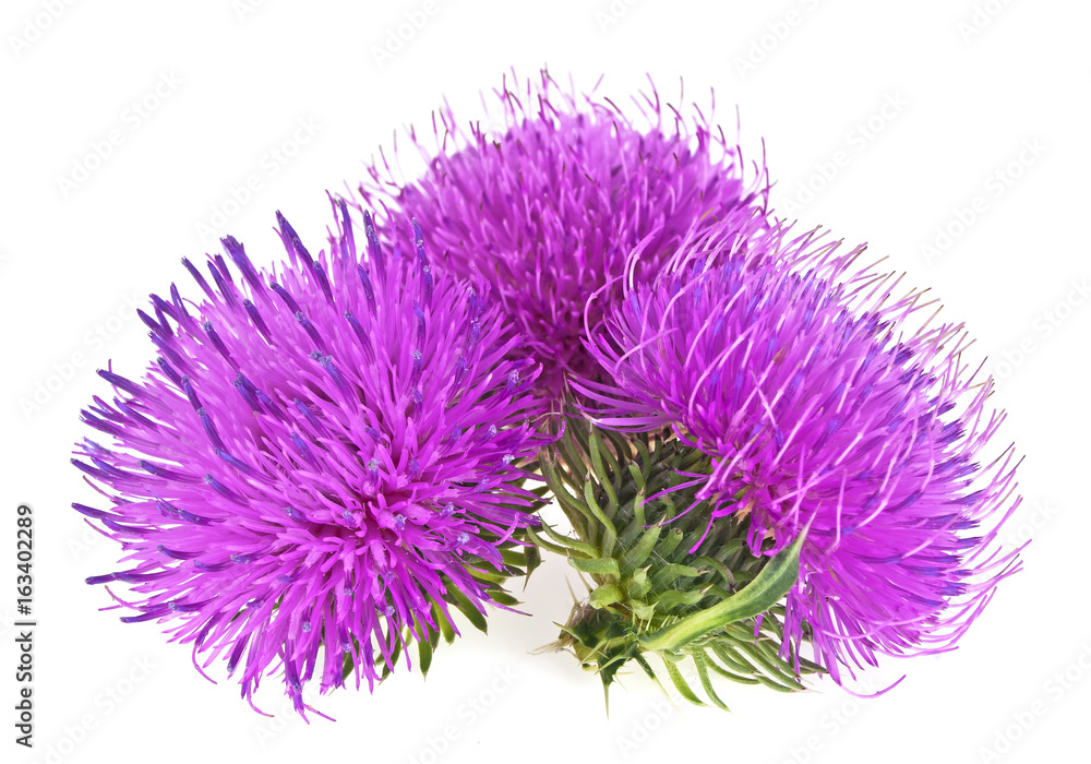 Obraz na plátně Milk thistle (Silybum) flowers isolated on a white background