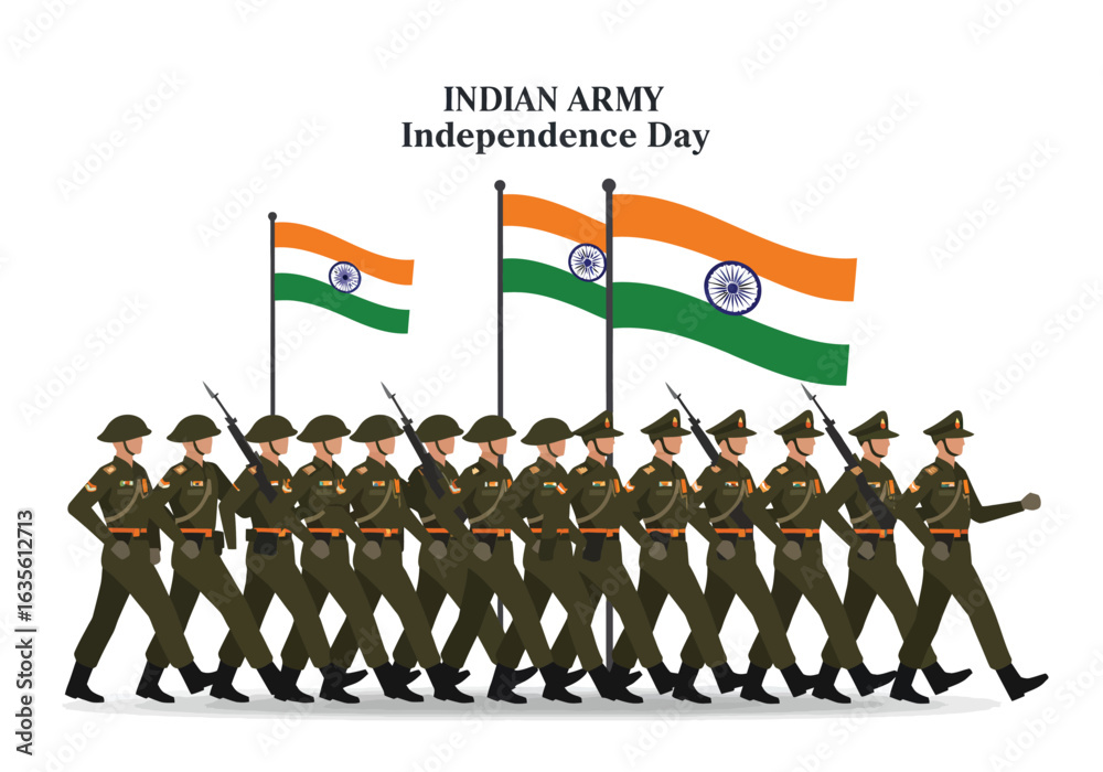 Obraz na plátně Indian Army soldiers in olive green uniforms marching in a parade with rifles and the Indian national flag