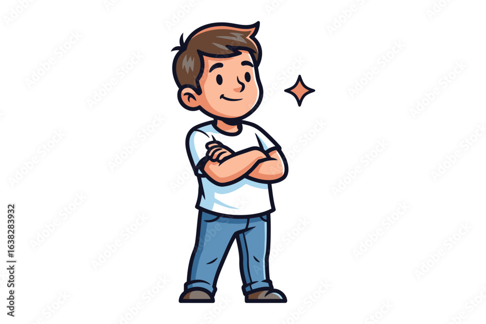 Obraz na plátně Confident Boy: An illustration of a confident young boy with a self-assured smile, arms crossed, and a sense of optimism