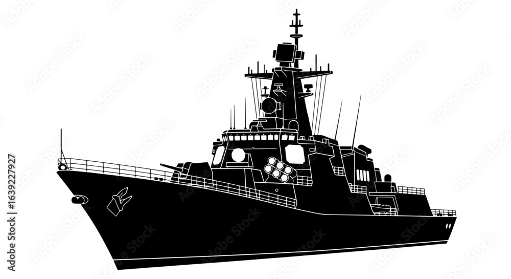 Obraz na plátně A detailed silhouette of a modern military naval vessel