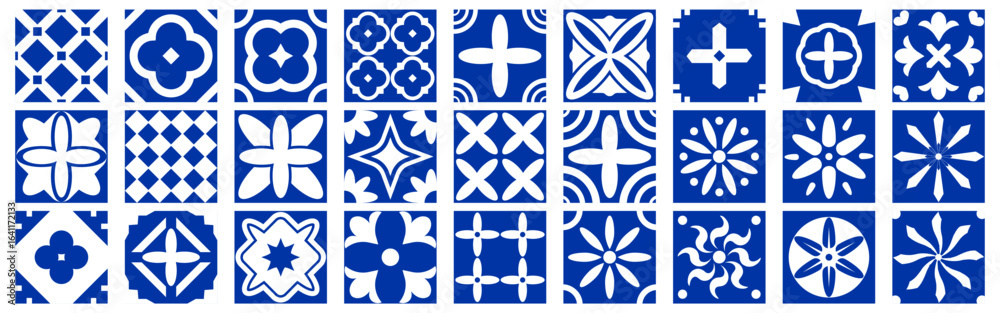 Obraz na plátně Set of blue spanish tiles. Mosaic geometric tile collection