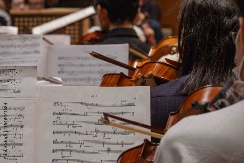 Obraz na plátně Close-Up of Viola Sheet Music During Orchestra Rehearsal