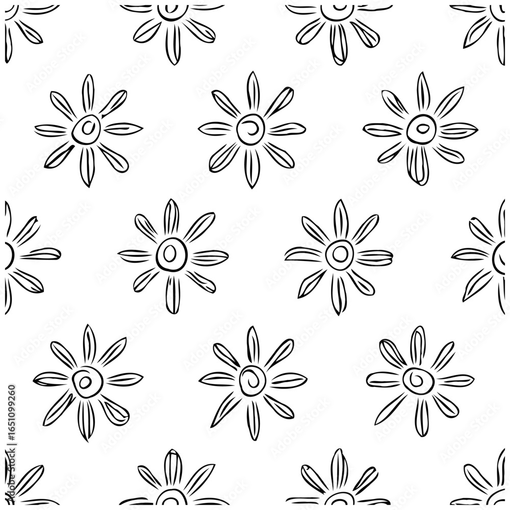 Obraz na plátně Seamless floral pattern: whimsical flowers on a white background creates a fresh
