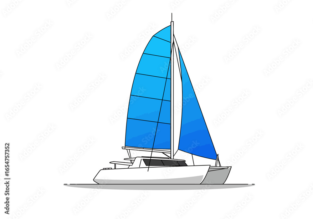 Obraz na plátně A bluesailed catamaran whitehulled stands on a gray surface