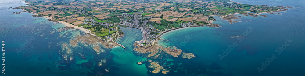Obraz na plátně Aerial view of the Village of Barfleur in Normandy and the beautiful coastline o