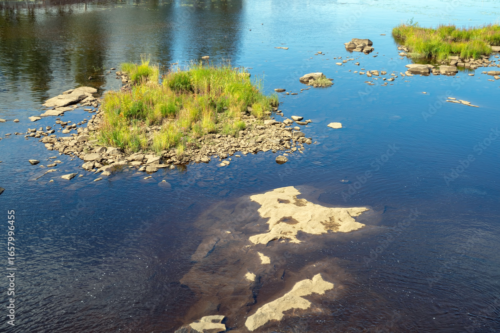 Obraz na plátně river flowing through rocky shallows in Oulu, Finland