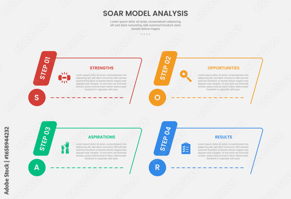 Obraz na plátně SOAR model analysis infographic outline style with skew or slope rectangle conta