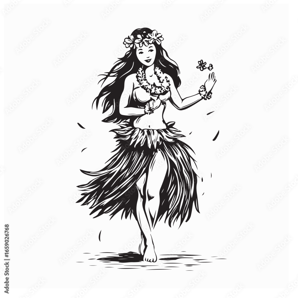 Obraz na plátně Hula Dance Costume Vector Grass Skirt and Flower Decoration