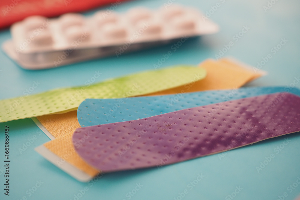 Obraz na plátně Colorful adhesive bandages on a bright background