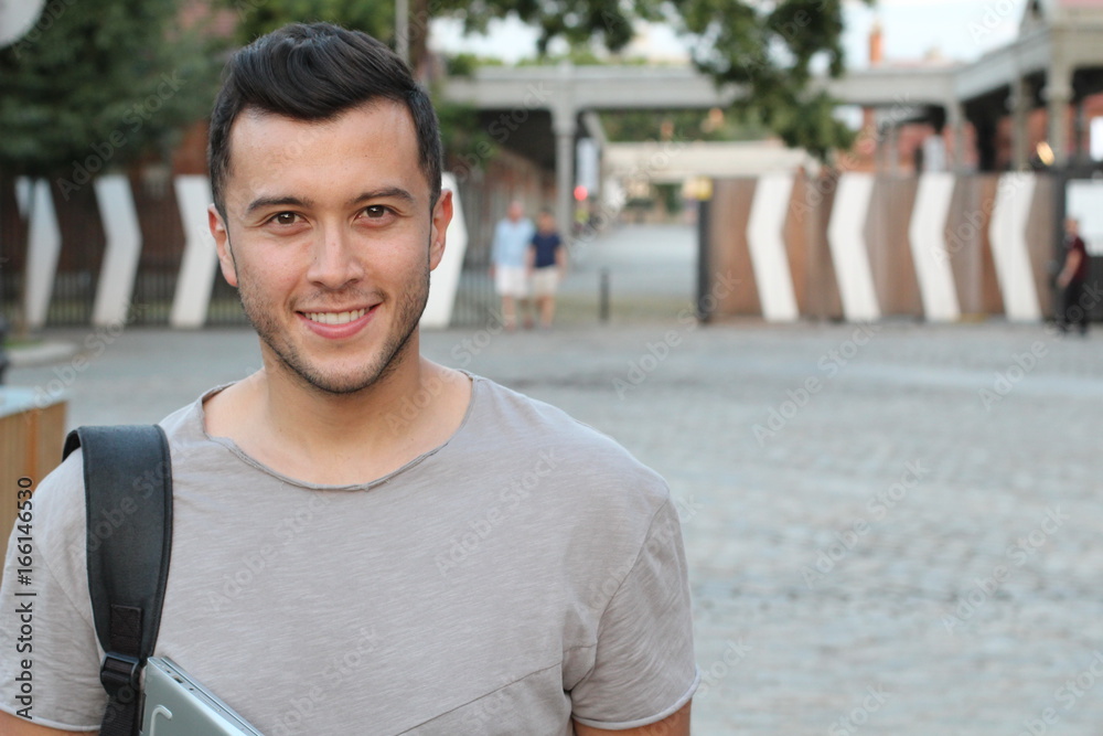 Obraz na plátně Cute mixed race person male smiling isolated with copy space