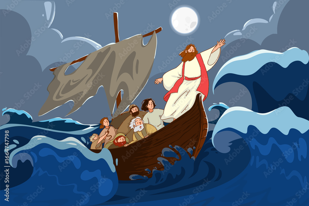 Obraz na plátně The story of Jesus calming the storm is an animated biblical scene that conveys