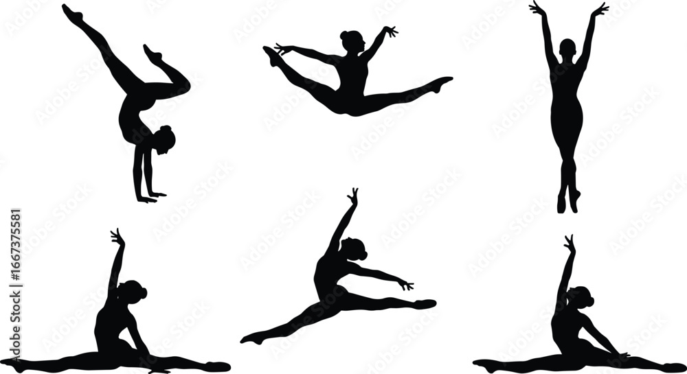 Obraz na plátně Silhouette female gymnast, dancer posing, acrobatic moves, fitness flexibility,
