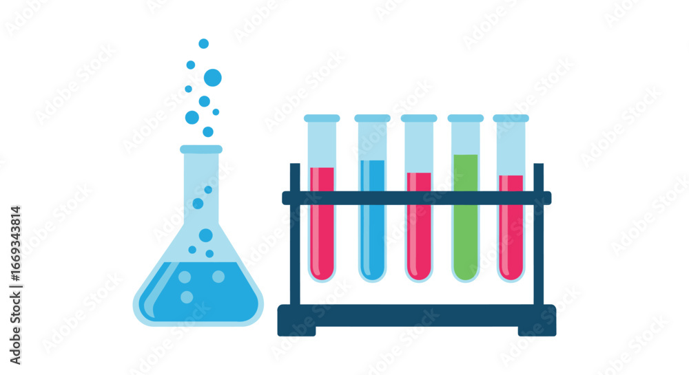 Obraz na plátně Beaker and test tubes with colored liquids in a laboratory setting